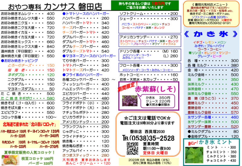 ハンバーガーやたこ焼き、かき氷なら磐田市のおやつ専科カンサス
