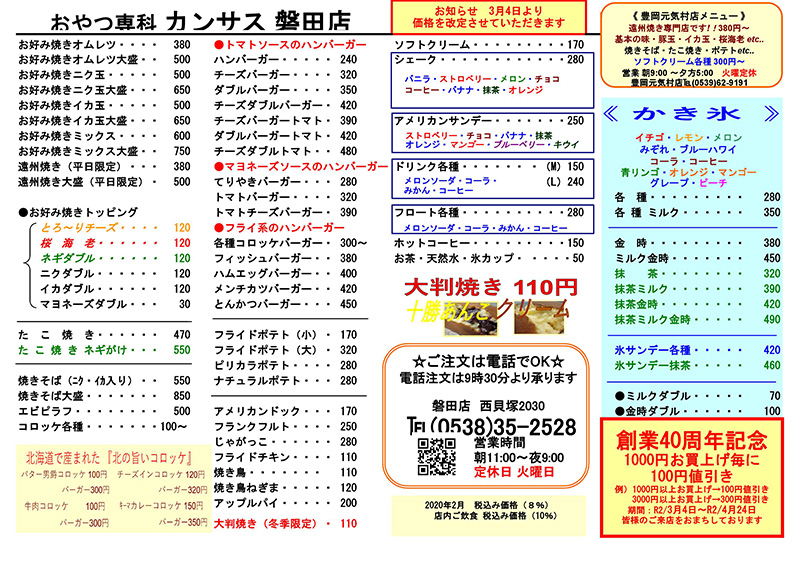 ハンバーガーやたこ焼き、かき氷なら磐田市のおやつ専科カンサス