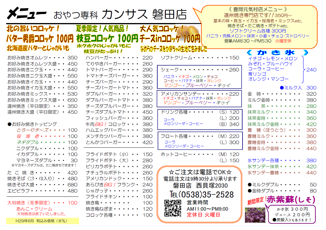 ハンバーガーやたこ焼き、かき氷なら磐田市のおやつ専科カンサス