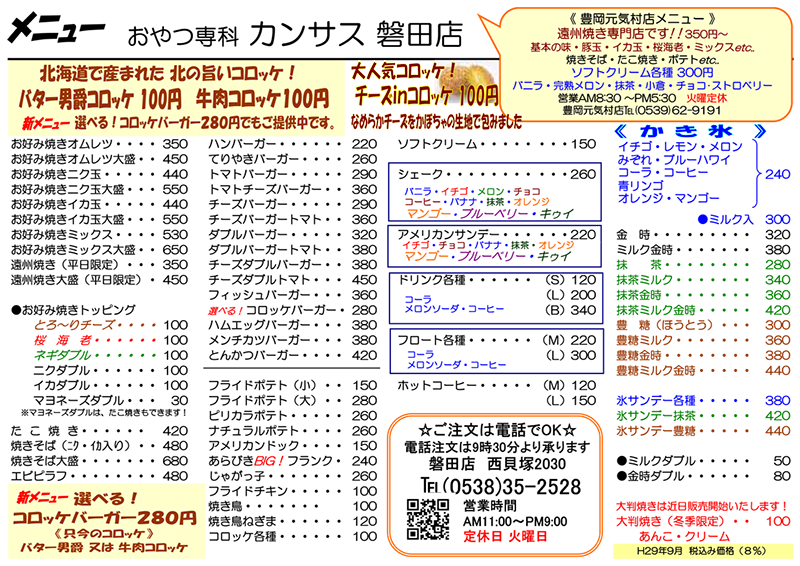 ハンバーガーやたこ焼き、かき氷なら磐田市のおやつ専科カンサス