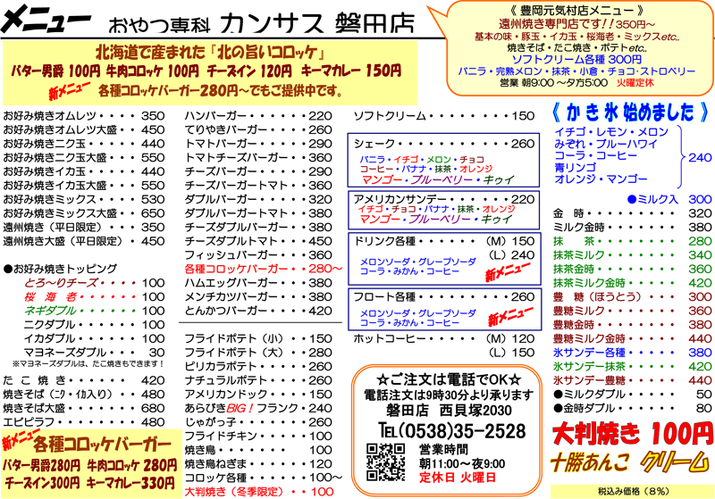 ハンバーガーやたこ焼き、かき氷なら磐田市のおやつ専科カンサス