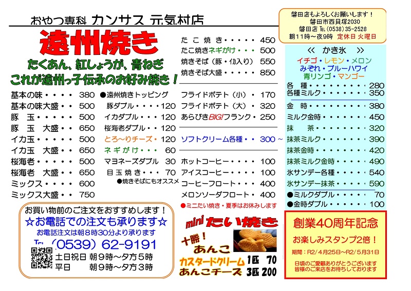 ハンバーガーやたこ焼き、かき氷なら磐田市のおやつ専科カンサス