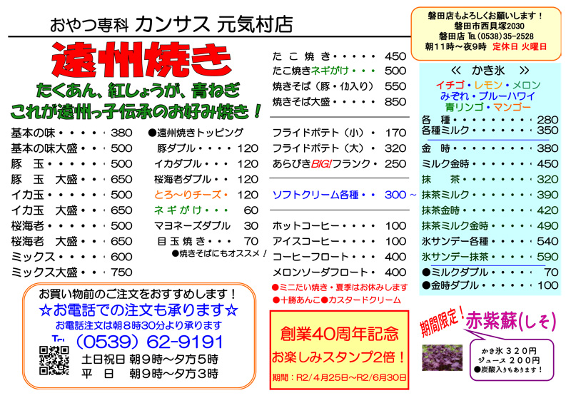 ハンバーガーやたこ焼き、かき氷なら磐田市のおやつ専科カンサス