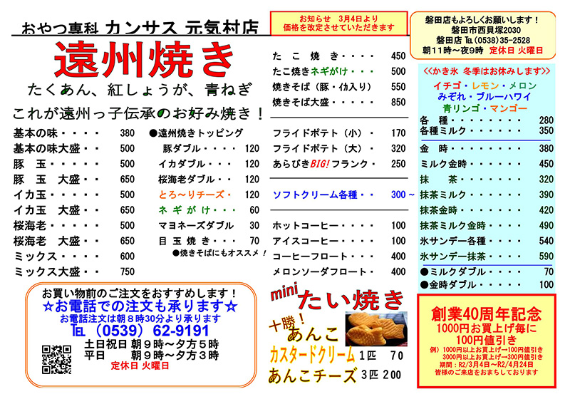 ハンバーガーやたこ焼き、かき氷なら磐田市のおやつ専科カンサス