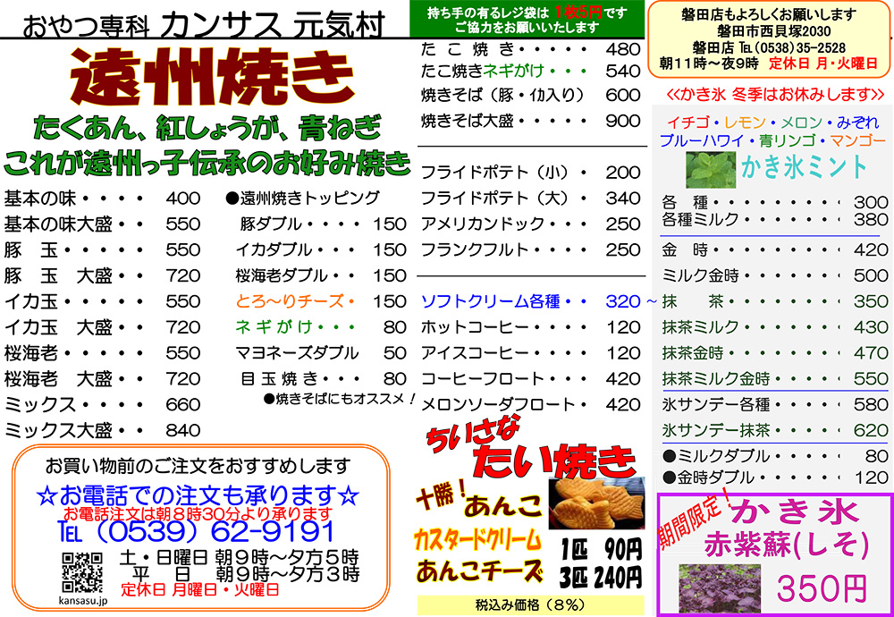 ハンバーガーやたこ焼き、かき氷なら磐田市のおやつ専科カンサス