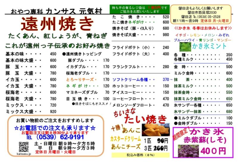 ハンバーガーやたこ焼き、かき氷なら磐田市のおやつ専科カンサス