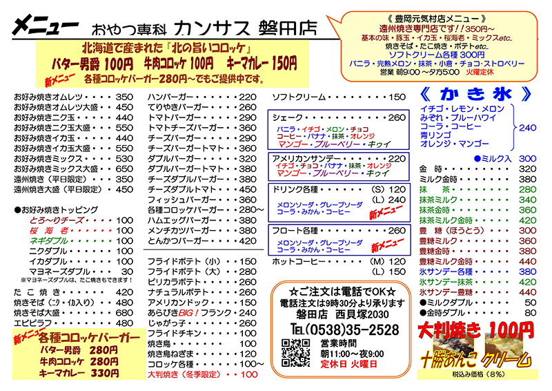 ハンバーガーやたこ焼き、かき氷なら磐田市のおやつ専科カンサス