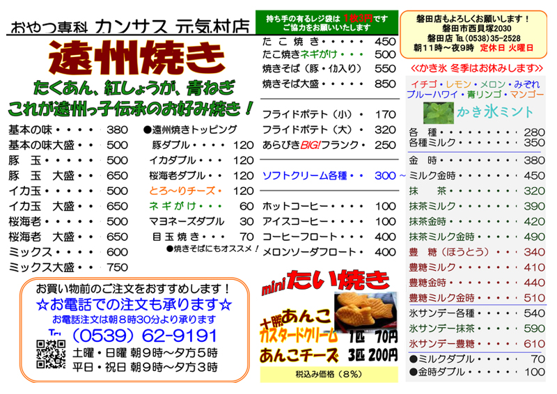 ハンバーガーやたこ焼き、かき氷なら磐田市のおやつ専科カンサス