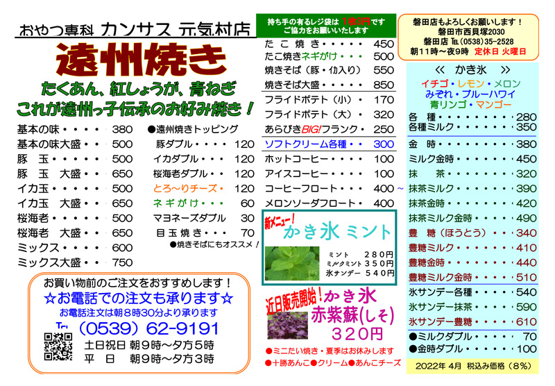 ハンバーガーやたこ焼き、かき氷なら磐田市のおやつ専科カンサス