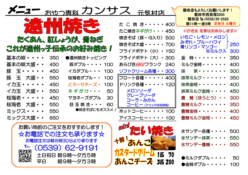 ハンバーガーやたこ焼き、かき氷なら磐田市のおやつ専科カンサス